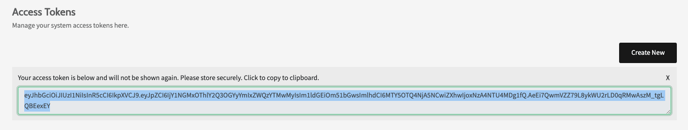 - Go to Profile menu > Access Tokens > Create New.