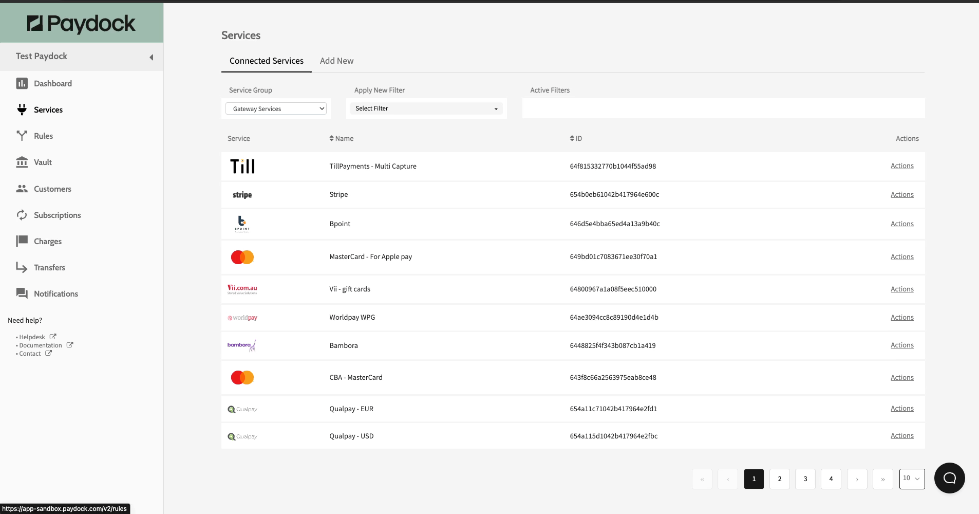 Services Groups are processing endpoints through which companies seek to transact with customers. These endpoints can be quickly activated via our existing integrations.