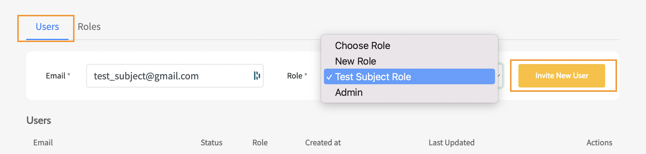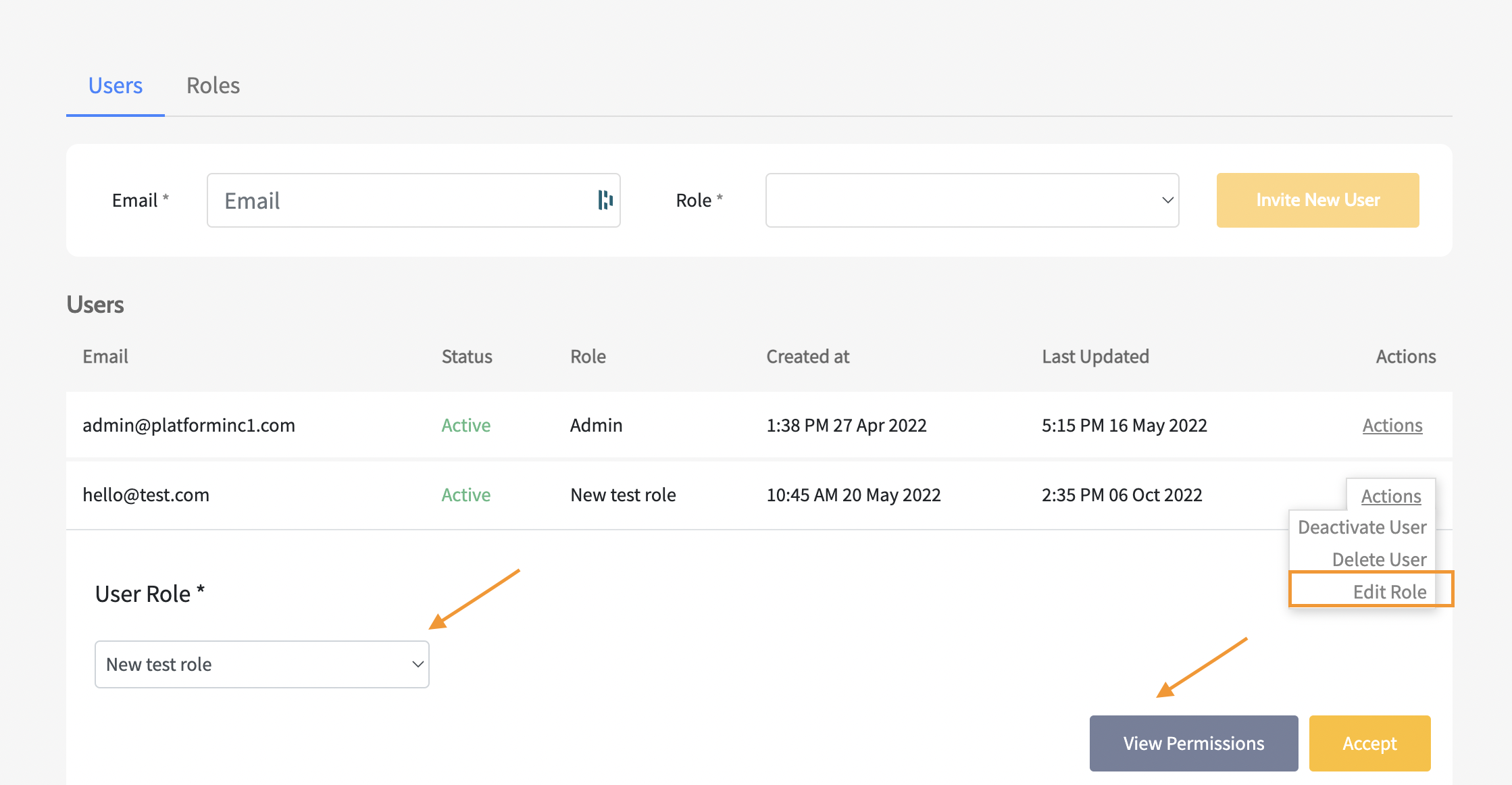 - Add the new User's Email and assign a Role.