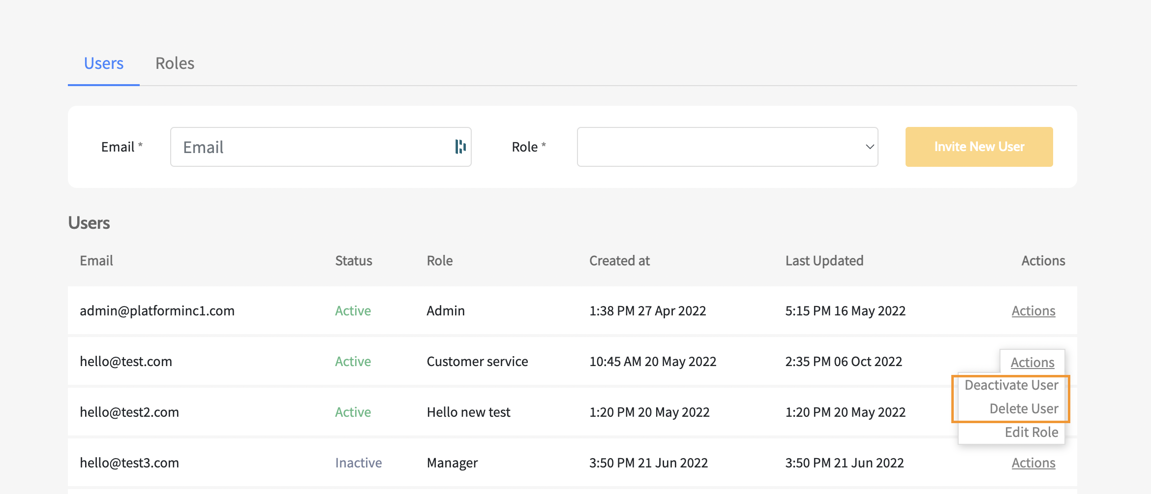 - Go to Profile menu > Brand Users > Users > Actions > Edit Role for the specified User.