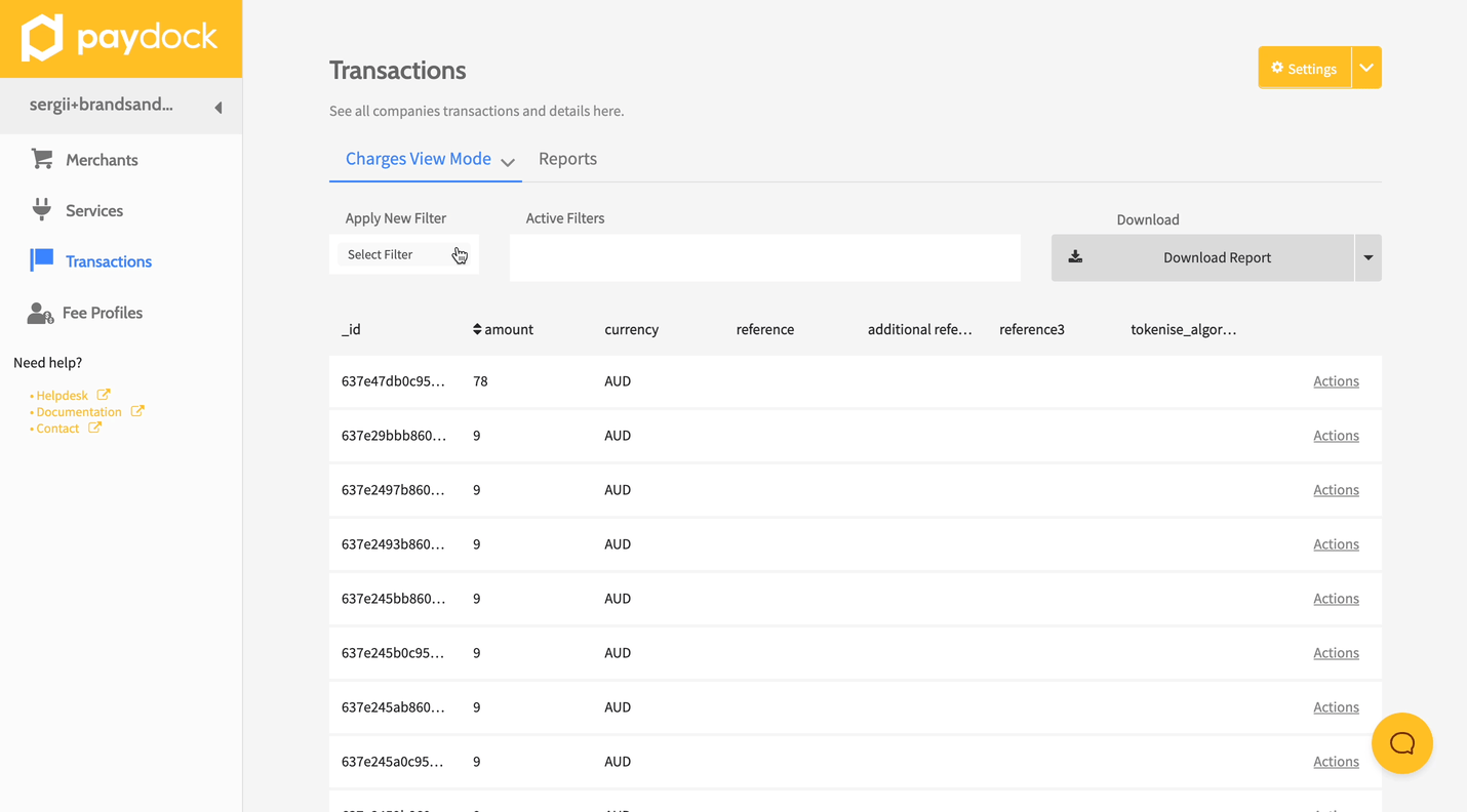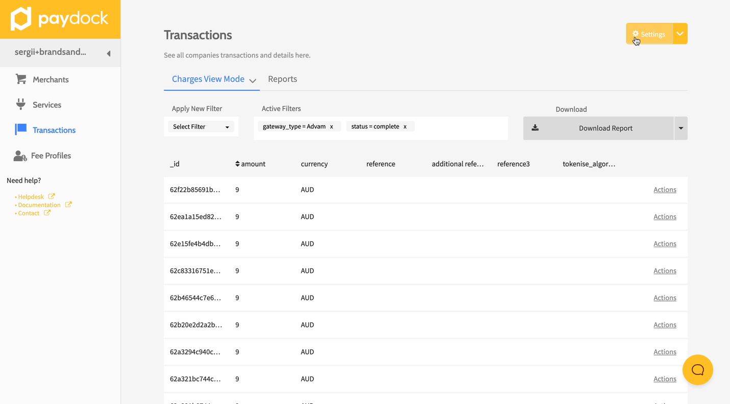 - Go to Transactions > Charges Mode > Settings in the upper right corner.