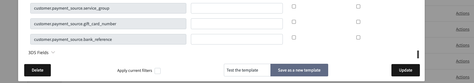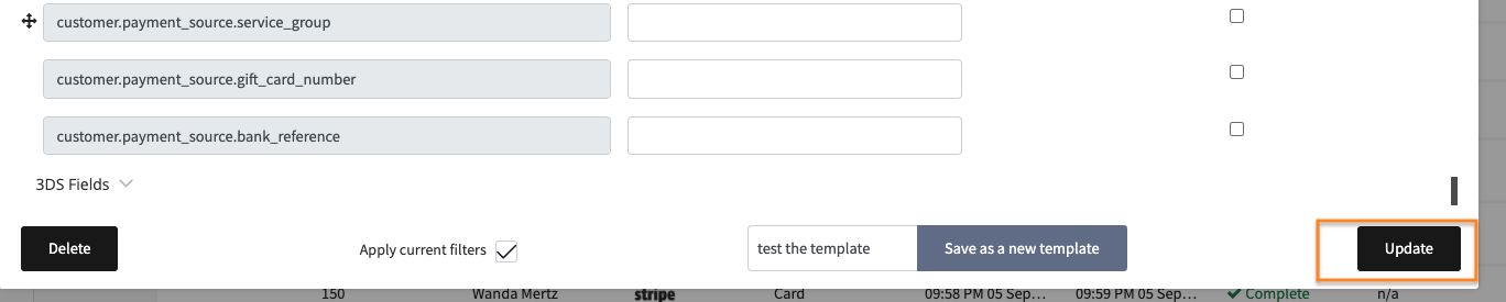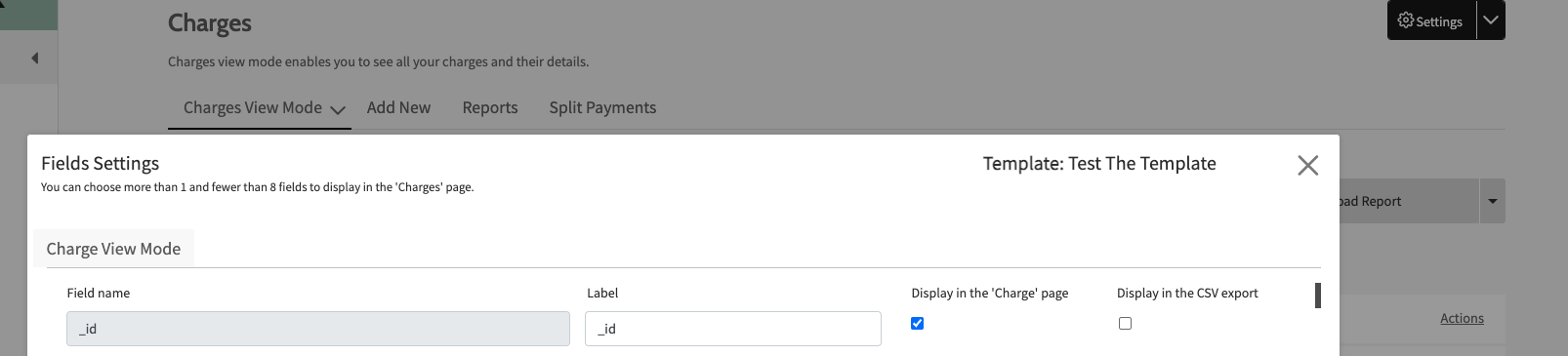 - Select the Fields by checking the Display in the Charges page or Display in the CSV export. It’s optional to change Label names.