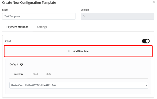 - Click "Add New Rule" for every card scheme you want to include in the conditions. These rules, such as "Rule 1" and "Rule 2", are evaluated sequentially.