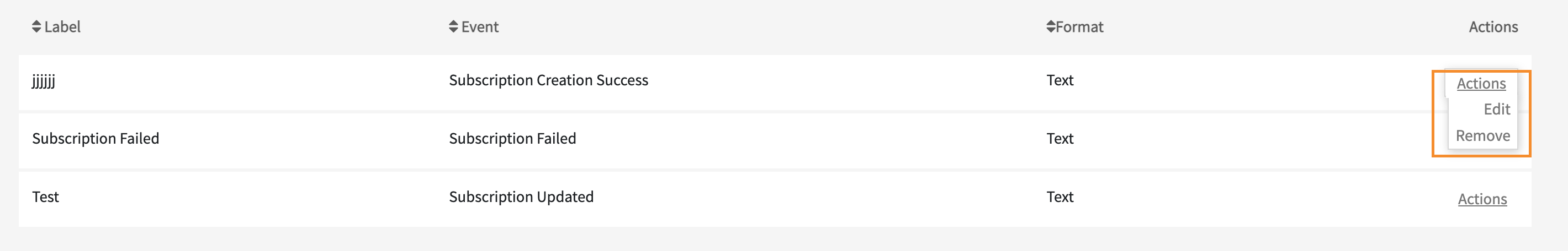 - Go to Notifications > Templates > Actions > Remove for the specified template. You can use the filter option or browse the list.