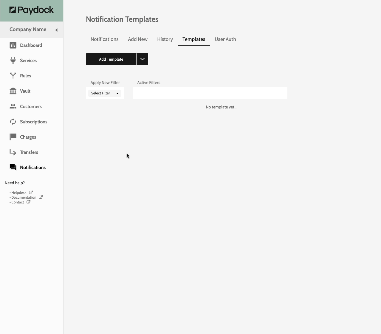 - Go to Notifications > Templates > Add Template.