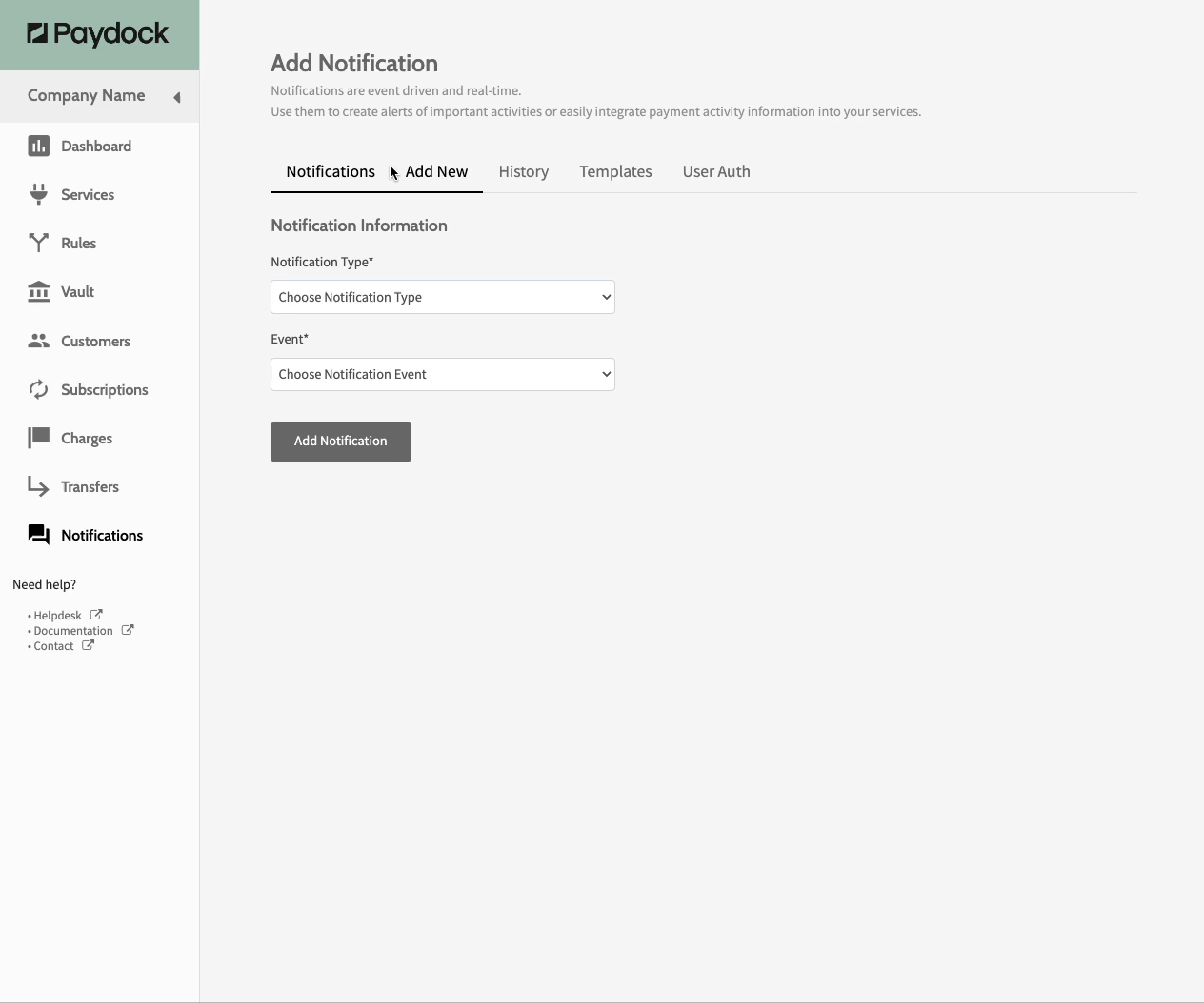 Notifications inform you of all the activity on your account in real-time. Notifications can be delivered by Webhook, email or SMS and are customisable based on the Customer and a range of other parameters. For example, send receipts or alerts and trigger other business processes, such as shipping or correspondence.