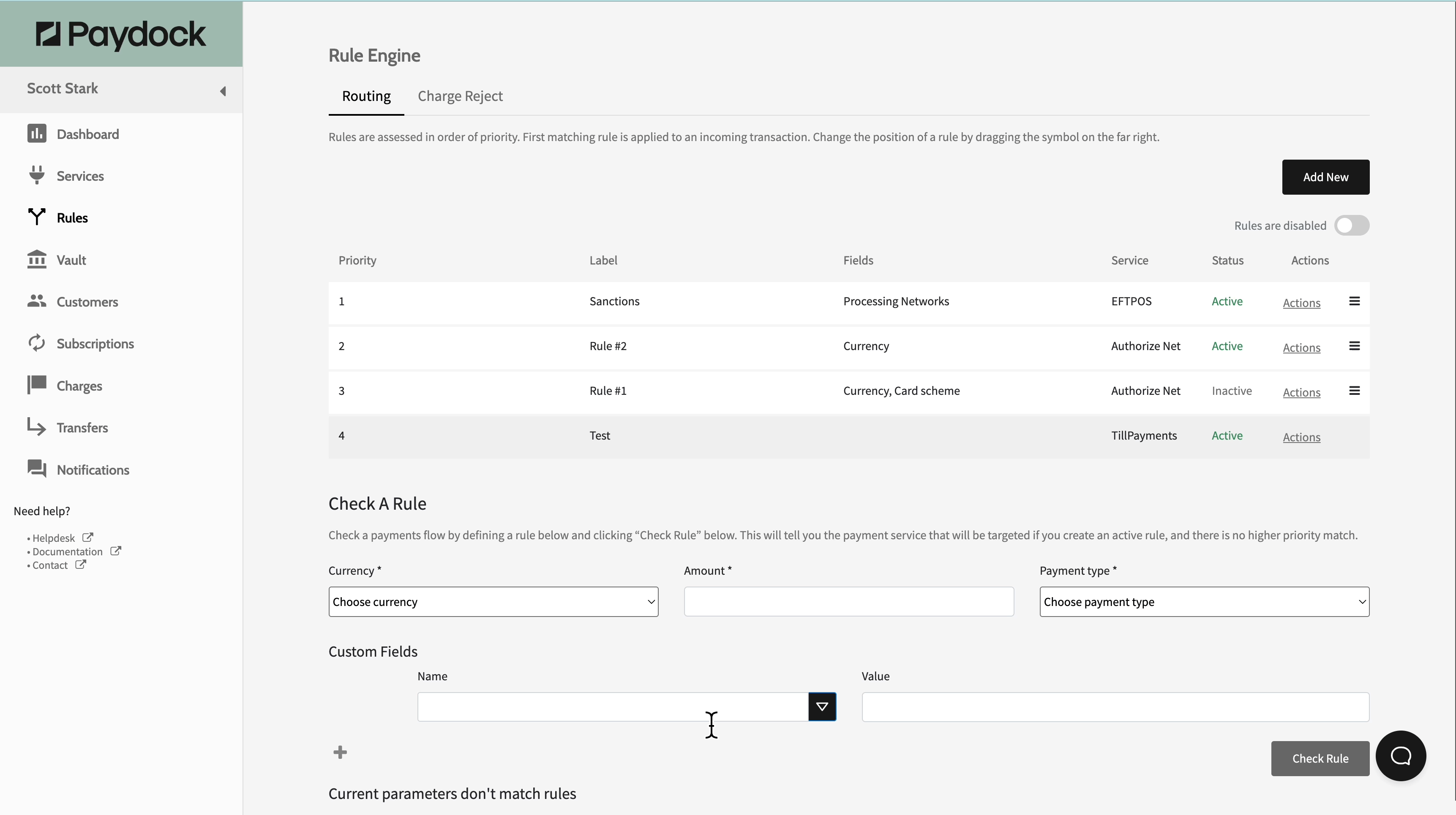 - Go to Rules > Routing or Charge Reject.