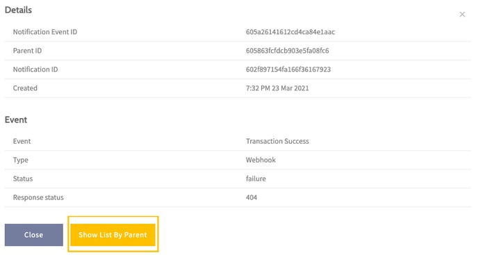 Note: (only for Failed) You can sort all Failed notifications by Parent ID by clicking the Show List By Parent button.