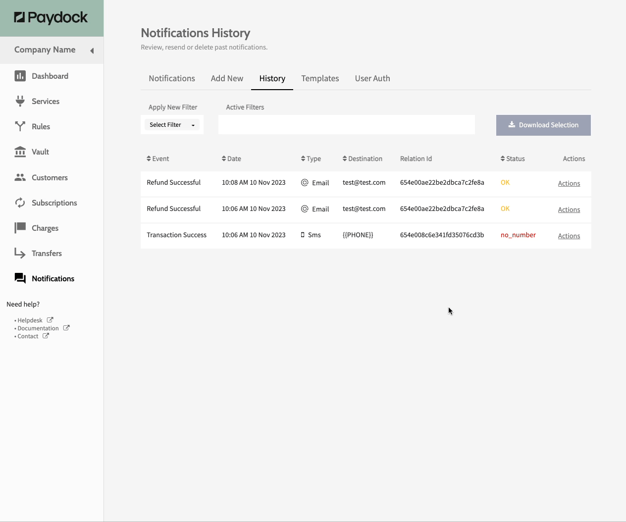 - Parent ID - the Parent ID of the Notification. For re-sent Notifications, it will show the ID of the Initial Notification. For an Initial Notification, the value will be blank.